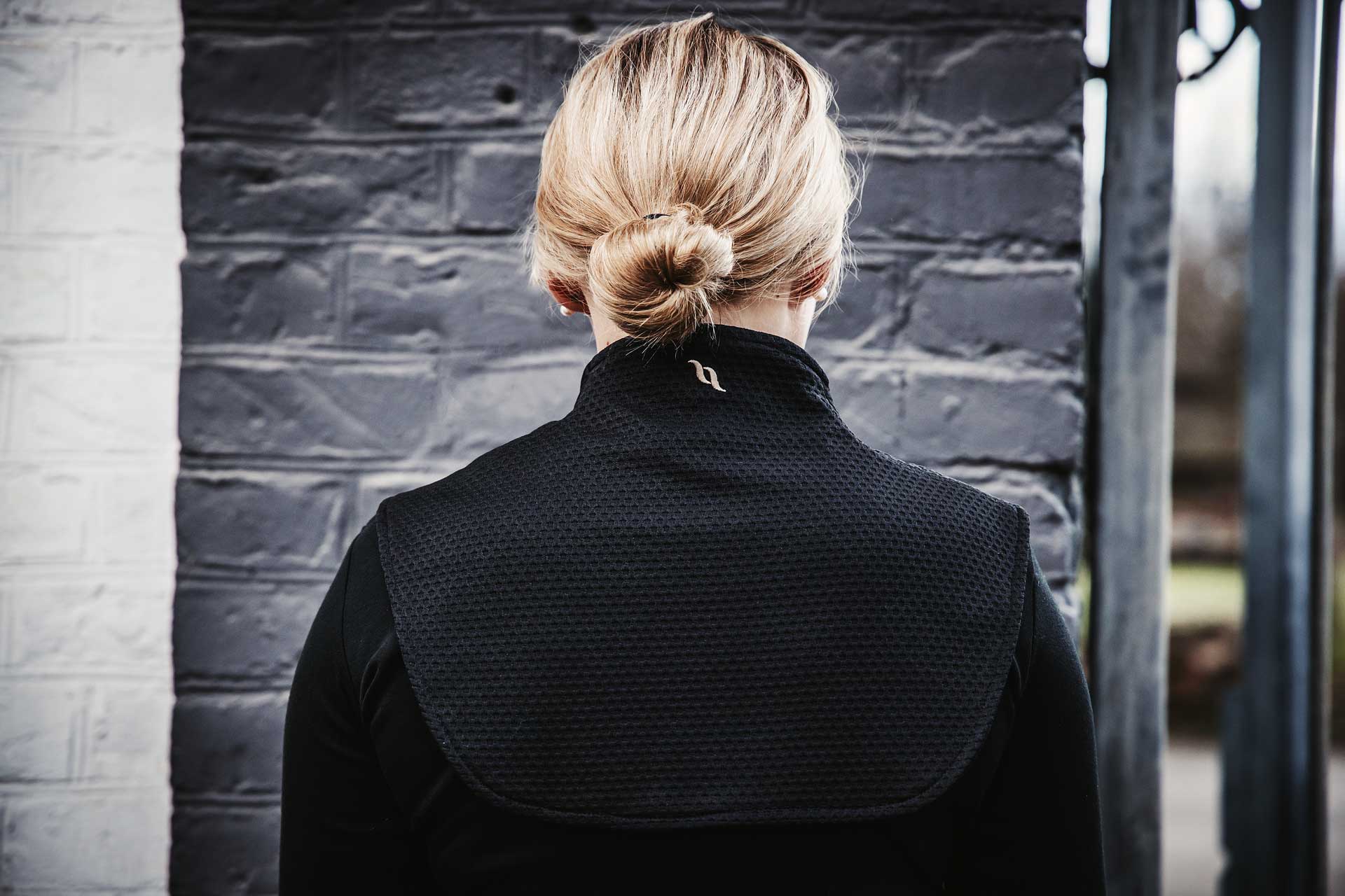 The ‘Per4mance Functional Scarf’ and the ‘Eli’ and ‘Blair’ loose polo collars are other examples of garments that double as neck support. ‘Eli’ and “Blair” are knitted garments whose inside is lined with a FIR-reflective material. This way, they keep the neck warm at the same time.