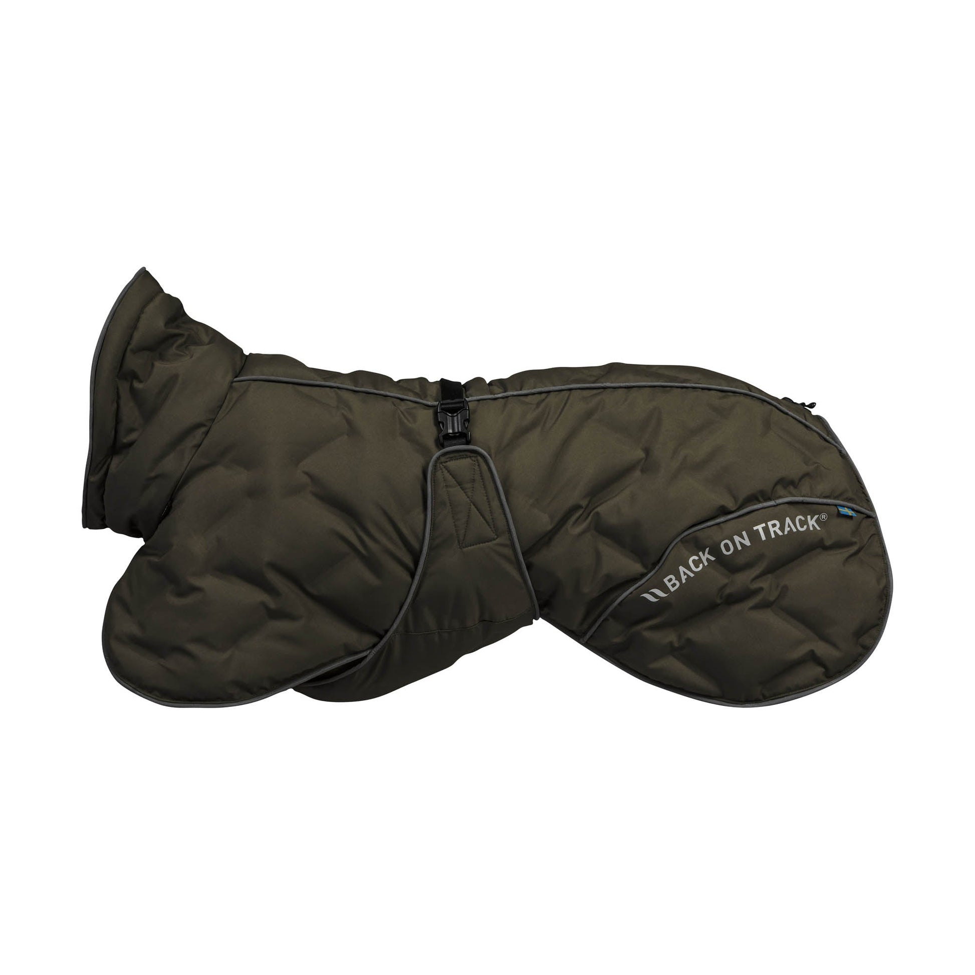 Täcket är vattentätt (10 000 mm) och termoquiltat, vilket innebär att fyllningen förblir jämnt fördelad, men utan sömmar som tränger igenom yttertyget. Detta säkerställer att regn, vind och snö hålls ute, så att din hund förblir väl skyddad.