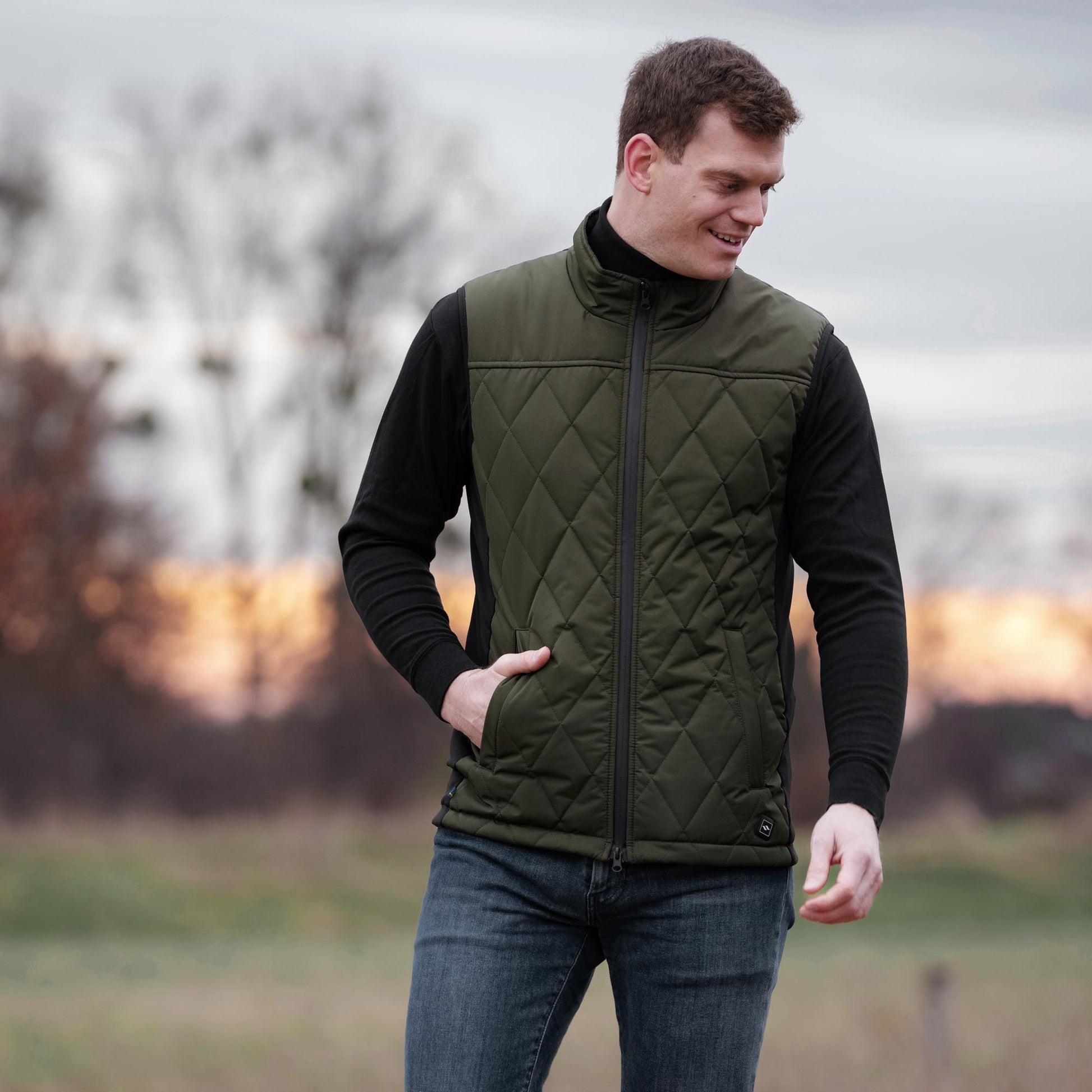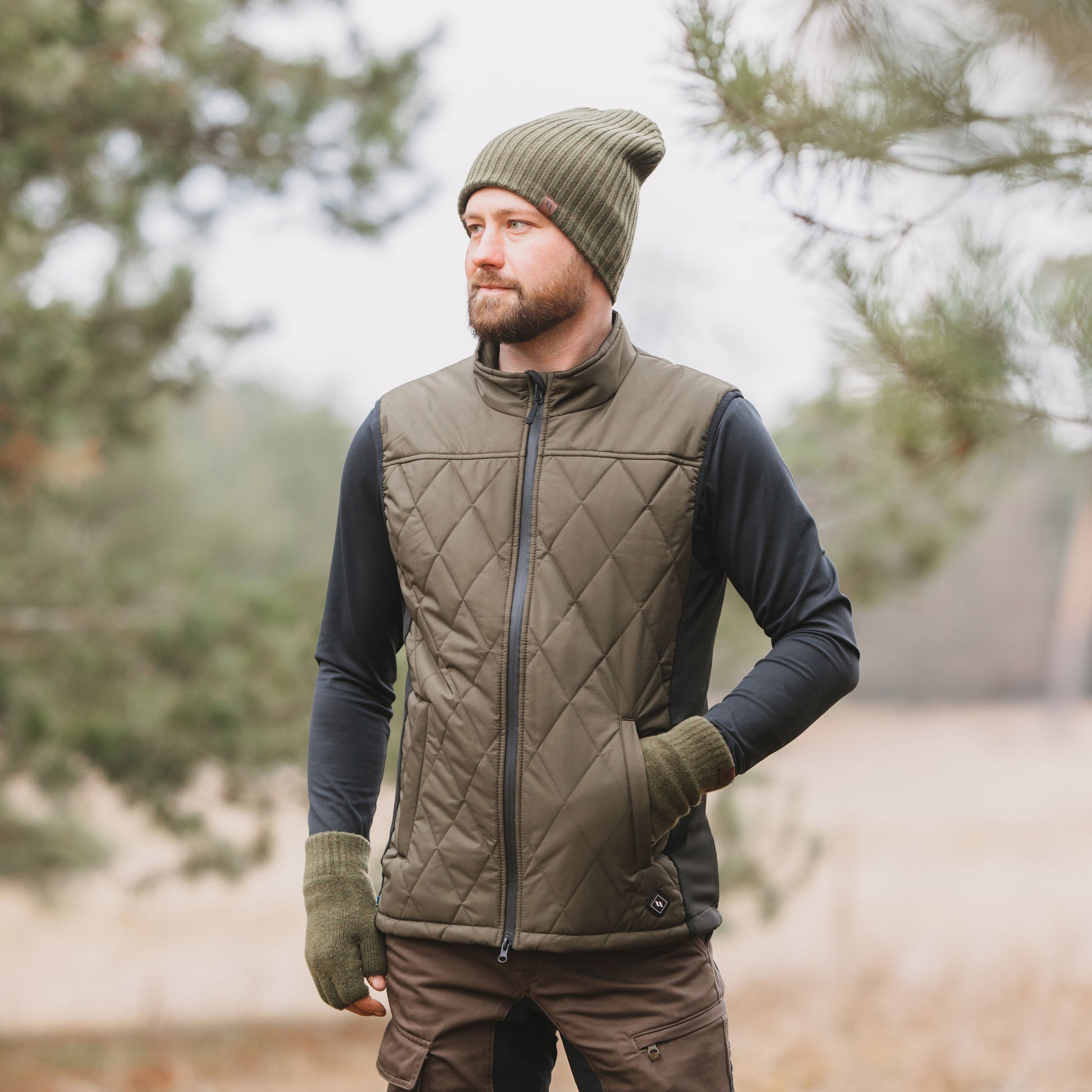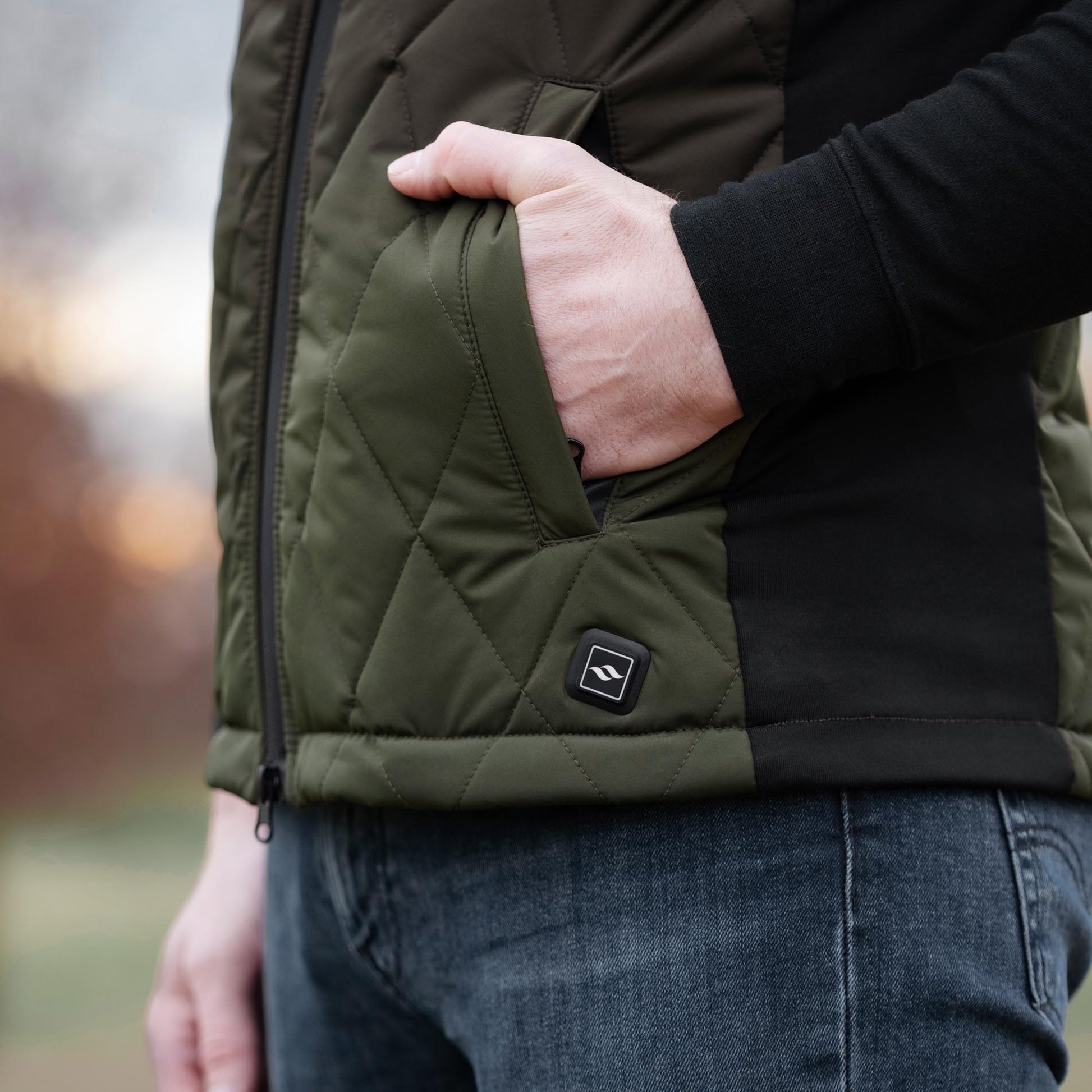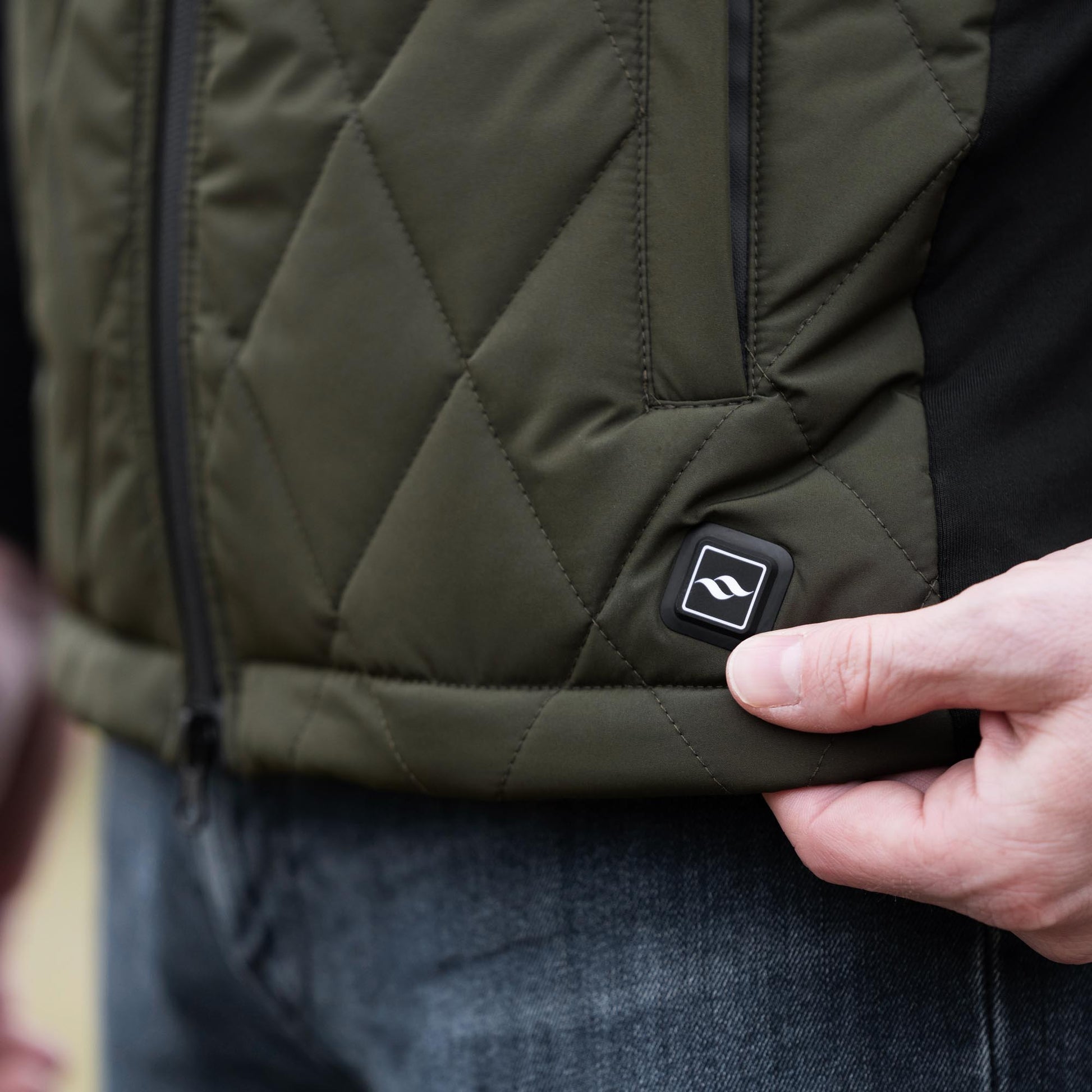 Den här quiltade västen är lätt vadderad och har ett inbyggt elektriskt värmesystem som drivs av valfri powerbank. Genom att trycka på knappen med vår logga - som sitter på plaggets framsida - aktiveras det elektriska värmesystemet som genast omfamnar kroppen med behaglig värme.