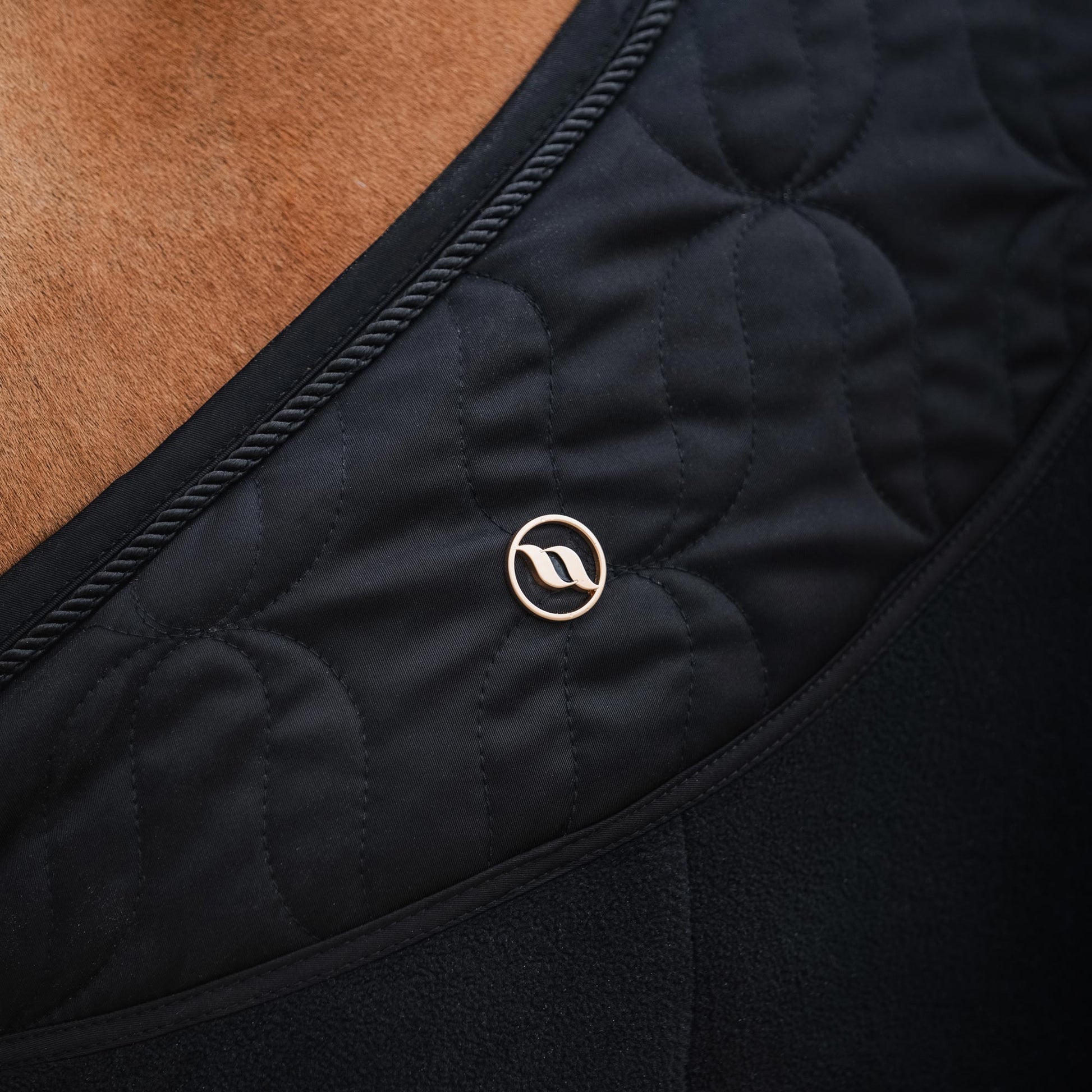 Deep Nights Fleecedækken er lavet af et fugttransporterende materiale med høj åndbarhed. Foret på indersiden indeholder vores unikke Welltex®️-teknologi, som gør tæppet særligt fordelagtigt at bruge før og efter træning eller konkurrence.