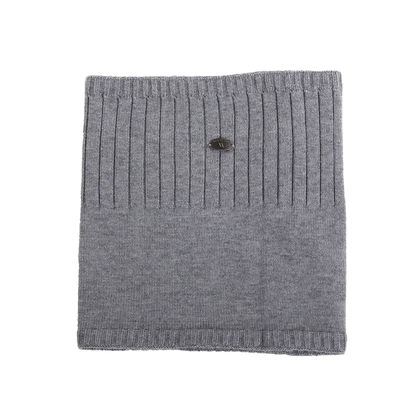 Tørklædet er strikket med to forskellige metoder, hvilket resulterer i en behagelig løkke, der folder sig pænt om halsen. Ribstrik for at skabe luftlag og som giver en isolerende effekt. Stilfuld meleret lysegrå farve. Metalmærke med Back on Track logo.