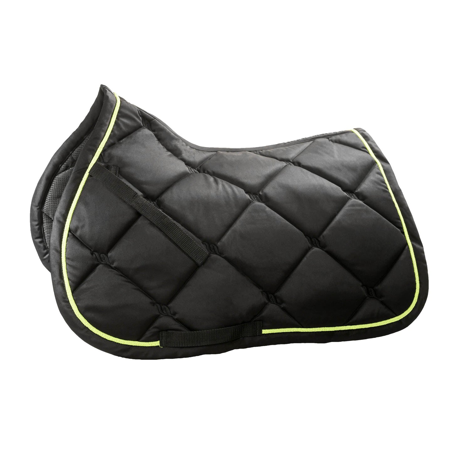 Stilfuld og iøjnefaldende spring underlag med en distinkt, anatomisk pasform, der følger konturerne af hestens ryg og giver ekstra plads over rygsøjlen og manken for at mindske risikoen for tryk og gnav.