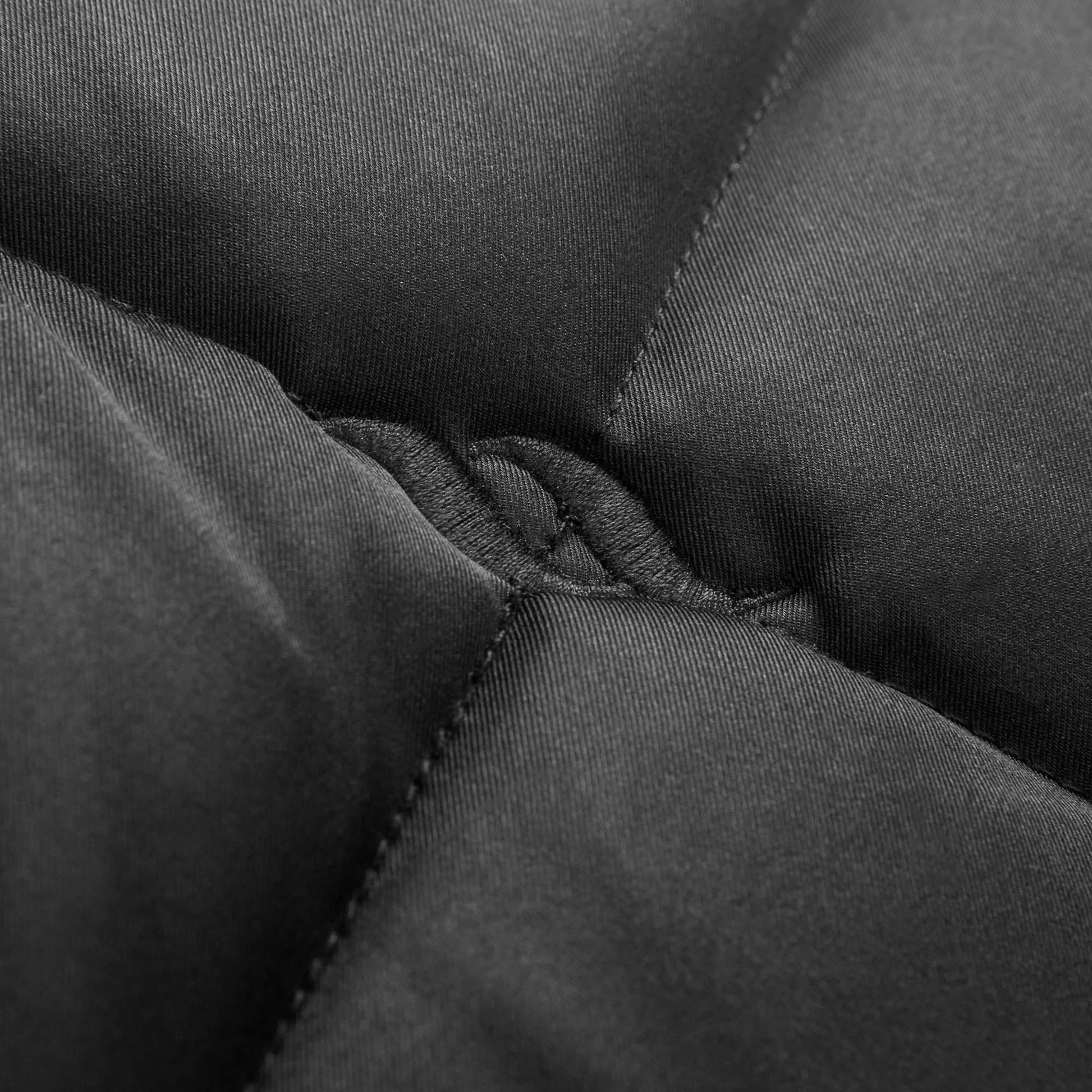 Back on Track vingerne, broderet i sort, er indarbejdet i et klassisk quiltet mønster, der spænder over en helt sort, blank finish.