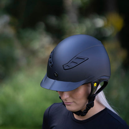 Sikkerheden er i fokus: Hjelmen er godkendt efter EN1384:2023 og CE-mærket. Find din perfekte størrelse i vores størrelsesguide og tag ud på ridebanen med sikkerhed i topklasse.